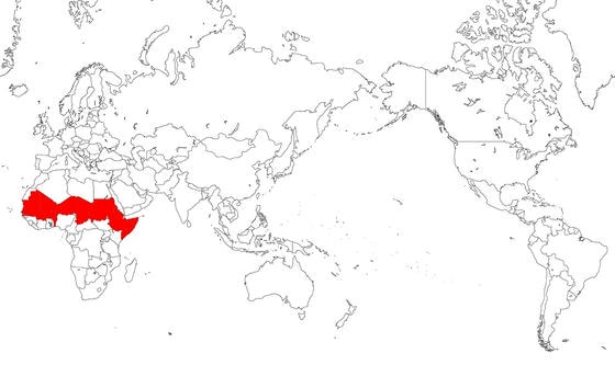 - アフリカ大陸北東部から中部、西部
