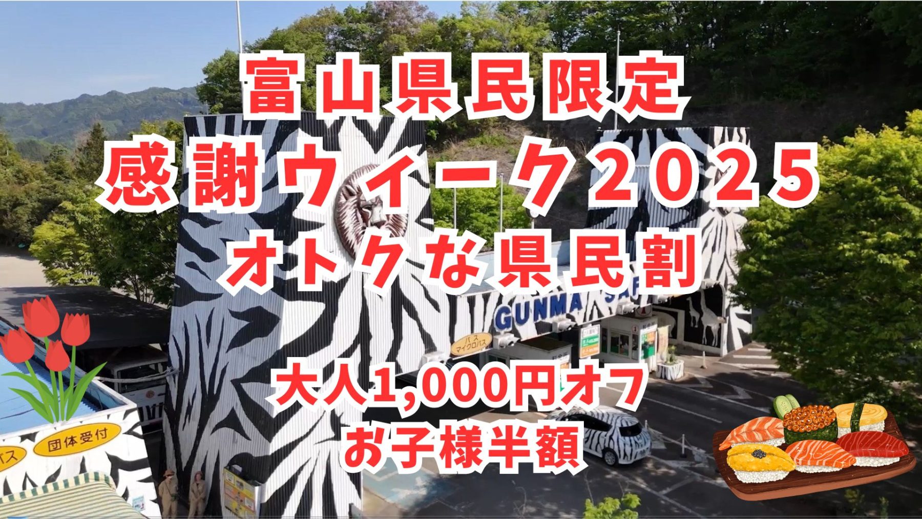 秋の爽やかな空気と共に、群馬サファリパークから特別な感謝の気持ちをお届けします。2025年10月4日(土)から10月13日(祝)までの10日間限定で、「【新潟県民割】新潟県民感謝ウィーク」を実施いたします。新潟県民の皆様には日頃より多くお越しいただいており、その「距離 × 来園者数」の分析でも新潟県が圧倒的に多いことが分かっています。だからこそ、普段の感謝を込めて、この期間中は特別価格でご入園いただけるチャンスです。大人は1,000円引き、お子様(3歳~中学生)はなんと半額(850円)!入場券のみが対象で、園内周遊バス等は別料金となります。WEBチケットの事前購入を強くおすすめします。さあ、新潟の皆様、この秋は群馬サファリパークで動物たちとの出会い、自然とのふれあい、そして普段とはひと味違った時間を過ごしてみませんか。 新潟県民感謝ウィークとは何か 群馬サファリパークでは、新潟県にお住まいの皆様に日ごろの感謝を込めて、「新潟県民感謝ウィーク」を開催いたします。新潟県には「県民の日」が定められていないため、当園で特別に設定するこの感謝ウィーク。過去の来場者アンケートやアクセスデータによれば、新潟県からお越しになるお客様は群馬サファリパーク全体の来園者数において非常に多く「距離 × 来場者数」の指標でもトップクラスとなっています。そのお礼として、この期間限定で入場料を割引いたします。 割引期間と内容 期間・対象者・割引内容 2025年10月4日(土)~10月13日(祝)新潟県在住の方(居住を証明できるものの提示をお願いします)大人:通常3,200円 → 2,200円(1,000円引き)お子様(3歳〜中学生):通常1,700円 → 850円(半額) ※シニア(65歳以上)の料金2,400円は、この新潟県民感謝ウィークでは大人料金(2,200円)の方が安くなるため、住所確認ができれば割引適用いたします。※割引は「入場券」のみが対象です。園内周遊バスやガイドツアー等は別途料金が必要です。 ご利用方法・注意点 割引を適用するには、新潟県にお住まいであることを確認できる身分証の提示が必要です。受付窓口にてご提示ください。チケットはWEBチケットと当日窓口の両方でご購入可能ですが、WEB購入の方が混雑を避けられ、スムーズです。事前のWEB購入をおすすめします。園内周遊バスやエサやりバス、体験ツアー、園内レンタカーなどのアトラクションは入場料金とは別料金です。乗車や体験を希望される方は当日別途お支払いください。 感謝ウィーク中の楽しみ方 動物たちとのふれあい強化ふれあいパークやふれあいハウス、小動物との触れ合いが楽しめる「ふしぎの動物の森」、本格VR体験のできる「わくわくアドベンチャーランド」など、お子様連れにおすすめのスポットが多数あります。 人気ツアーも充実 サファリバス(約70分/土日祝運行)、エサやりバス、平日限定のエサバスplusなど、動物の自然な姿を間近で観察できるツアーがそろっています。 食事と休憩も安心 レストラン「サバンナ」、ファストフード「オークウッド」、売店「マルシェ」で、軽食からしっかりご飯まで、お好みに合わせてご利用ください。 季節ならではの自然美を堪能 10月は群馬も紅葉の始まり。動物たちと紅葉とのコントラストを楽しみながら、写真映えする風景が広がります。 他県の皆様へ この感謝ウィークは新潟県民の皆様への特別な感謝企画ですが、多くののお客様からのご要望もいただいています。今後、県民の日を基準に他県の皆様にも感謝ウィークのような特別料金企画を設定する予定です。どうぞお楽しみにお待ちください。 群馬県民の日(10/23~10/28)は販売中です https://ticket.safari.co.jp/ まとめ 新潟県民の皆様、この秋は群馬サファリパークで心温まる感謝ウィークをお楽しみください。利用期間は10月4日(土)~10月13日(祝)で、割引内容は 大人1,000円引き、子ども半額(850円)。入園券のみが対象ですので、園内ツアーやバス等は別料金となります。混雑を避けるため、WEB事前購入を強くおすすめします。動物たちとのふれあい、紅葉散策、特別な写真のチャンスもいっぱい。新潟からでもアクセス良好です。皆さまのご来園を、スタッフ一同心からお待ちしております。