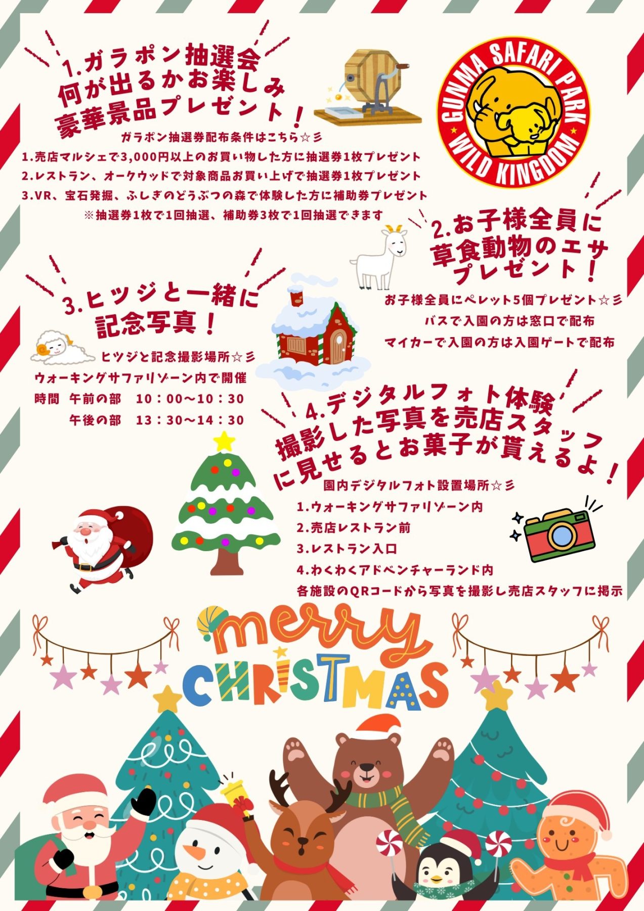 群馬サファリの2025クリスマスイベント開催!動物と楽しむ特別な4日間