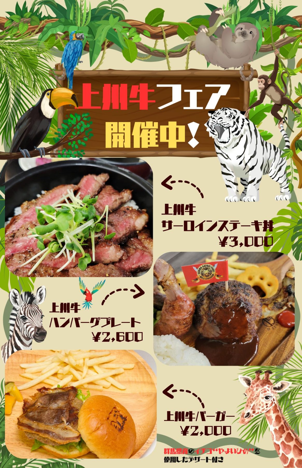 群馬サファリ、「いこーよ」2025年人気ランキングでWランクイン! 群馬県富岡市の「群馬サファリパーク」が、子どもとお出かけ情報サイト「いこーよ」が発表した『2025年お出かけ人気ランキング』で、群馬県内の総合ランキング第3位、さらに関東地区の動物園部門で第5位に選ばれました!数ある人気観光地の中でWランクインを果たしたことは、群馬サファリパークが家族連れのお客様にとって“何度でも訪れたくなる場所”である証であると自負しています。園内では、ライオンやゾウ、キリンなどを間近に感じられるサファリゾーンをはじめ、エサやり体験やふれあいパーク、季節ごとの限定バスツアーなど、動物たちと心通わせる瞬間がいっぱいです。今回は、そんな群馬サファリパークがどのようにして多くのお客様に支持され続けているのか、その魅力をたっぷりご紹介します。 群馬県で堂々の総合第3位!家族で楽しめる“体験型レジャー”の代表格 群馬サファリパークが「群馬県の総合第3位」に選ばれたのは、幅広い世代のお客様が楽しめる多彩な体験が揃っているからです。広い園内を走るサファリバスやエサやりバスでは、迫力満点のライオンやトラを間近に見られるほか、草食動物へのエサやり体験も大人気。特に「エサやりバスツアー」や夕暮れ限定の「夕暮れサファリツアー」は、他の動物園ではなかなか味わえない特別な体験です。また、小さなお子様にも人気の「ふれあいパーク」や「ふしぎの動物の森」では、かわいい動物たちと優しくふれあう時間を楽しめます。アミューズメント施設の「わくわくアドベンチャーランド」では、本格的なVR体験や宝石発掘、お祭り縁日、100円遊具などが充実し天候に左右されず楽しめます。園内のレストラン「サバンナ」やファストフード「オークウッド」、おみやげショップ「マルシェ」など、快適な滞在をサポートする施設も充実しています。 https://iko-yo.net/rankings/prefectures/10/yearly 関東地区の動物園で第5位!競合ひしめく中で光る“群馬サファリだけの魅力” 関東には上野動物園や多摩動物公園など全国的に有名な動物園が数多くあります。その中で群馬サファリパークが「動物園部門第5位」に選ばれたのは、やはり“体験の質”が高く評価されているからでしょう。お客様自身が車やバスに乗って野生に近い動物たちを観察するスタイルは、通常の動物園とはひと味違う臨場感があります。さらに「夕暮れサファリツアー」や「ナイトサファリツアー」といった時間限定のツアーは、昼間では見られない動物たちの姿を楽しめると評判です。こうした“群馬サファリならでは”の魅力が口コミで広がり、リピーターのお客様も年々増えています。 https://iko-yo.net/rankings/regions/3/genres/5/yearly 家族の笑顔があふれる、思い出づくりの場所へ 群馬サファリパークでは、季節ごとにさまざまなイベントやキャンペーンが開催されています。かわいい動物たちの展示やお得なWEBチケット割引も計画中。入場料は大人3,200円、子ども1,700円、シニア2,400円(65歳以上)(記事作成日時点の価格)で、WEB購入ならWEB限定割引も適用になります。今回のランキング入賞は、これまで応援してくださった多くのお客様のおかげです。これからも「また行きたい」と思っていただける動物との出会いと感動をお届けします。2026年も群馬サファリパークで、心に残る特別な一日をお過ごしください。皆さまのご来園をお待ちしております。 ウォーキングサファリにてえさやり体験の様子
