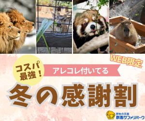 群馬県富岡市の群馬サファリパークの2月から3月・春休みシーズンは、澄んだ空気の中で動物たちが活発に動く、実は満足度の高い狙い目シーズンです。マイカーや園内専用バスで巡るサファリゾーンでは、檻がなく動物園とは真逆の立ち位置と距離感が迫力ある体験になります。小さなお子様連れのファミリー層から、卒業・進級を迎える学生グループまで、「見て・触れて・学んで・食べて」一日中楽しめるのが魅力です。さらに2月から3月の限定で、WEB事前購入のお得な割引や、グループ向けプランも充実しています。 【定番人気 No.1】エサやり体験バス 群馬サファリパークを語るうえで欠かせないのが、エサやり体験バスです。スイギュウやシマウマなどの草食動物、ライオンの群れへの肉やりなど、バス車内から安全にエサをあげられる大迫力の体験は、大人も子供も思わず歓声が上げてしまいます。経験豊富なドライバーやガイドによる解説付きで、動物の生態や行動理由がわかり、学習要素も自然に吸収できます。写真・動画映えも抜群で、家族のアルバムや卒業旅行の思い出づくりに最適です。 ■動物との距離感ゼロの園内周遊バスツアー解説 エサやりバス(黄トラ) エサやりバス(ライオン) サファリバス キリンバス(リフト付き) エサやりバス(白トラ) サファリバス 【WEB限定】冬の感謝割でおトクに満喫 今だけのWEB限定・事前購入限定「冬の感謝割」は、コスパ重視の方におすすめ。割引入園料に加え、ふれあいパークの入場やエサ体験がセットになり、通常よりもかなりお得な価格で楽しめます。「せっかく来たなら、いろいろ体験したい」というファミリーにも、「予算を抑えて丸一日遊びたい」といった学生グループにもぴったり。※販売期間限定のため、早めのチェックがおすすめです。 ■WEB限定・事前購入限定「冬の感謝割」詳細ページ エサやり エサやり レッサーパンダ カピバラ湯(冬期のみ) カンガルー バードショウ 【学生・グループ向け】卒業記念割(準備中) 卒業・進級という節目に、仲間と特別な時間を過ごしたい方には、卒業記念割がおすすめです。グループ利用でお得になる学生グループ応援プランで、割引入園券に特典が付いて見逃せない設定です。動物たちとの非日常体験は、テーマパークや街歩きとは違う“記憶に残る思い出”に。SNSでシェアしたくなる写真もたくさん撮れるので、卒業旅行・春休みのお出かけ先として高い人気を誇ります。 ■卒業割(Coming Soon) イメージ イメージ イメージ 【食も満喫】入園チケット+バーベキューセットプラン たっぷり遊んだあとは、開放感あふれるバーベキュータイムはいかがでしょう。入園チケットとバーベキューがセットになっているため、予約もスムーズで計画が立てやすいのがポイントです。最大1,300円割引になるセットプランはお得ですね。家族みんなでワイワイ楽しむバーベキューは、サファリ体験の満足度をさらにアップ。グループ利用にも相性が良く、「遊び+食事」を一度に楽しみたい方におすすめです。 ■食事付きプランのご紹介 サファリテラス バーベキューの一例 サファリテラス 屋内バーベキュー バーベキュー風景 バーベキュー風景 2月・3月が狙い目な理由 動物が活発で観察・撮影しやすい 春休み前後でも比較的ゆったり楽しめる WEB限定・季節限定割引で、繁忙期には無いコストパフォーマンス魅力 群馬 観光/群馬 お出かけ/家族旅行/卒業旅行/学生 グループで検索される方にも選ばれる、体験価値重視のサファリパークはいかがでしょう。この冬から春の特別な思い出づくりに、群馬サファリパークで“本物の迫力”を体感してください。 ■簡単・便利な WEB予約で待ち時間なし エルク