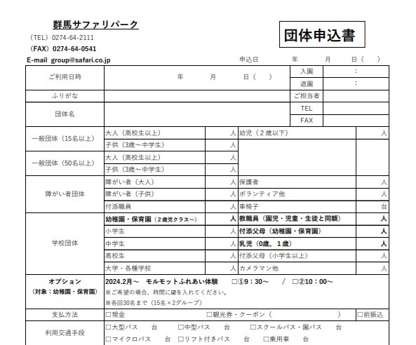 ※来園時に施設印を押印のうえ団体受付窓口にご提出ください。