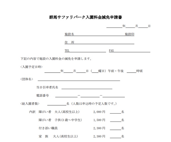 入園料金減免申請書(障がい者団体用)