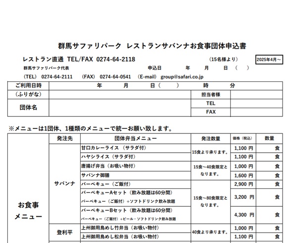 団体お食事申込書