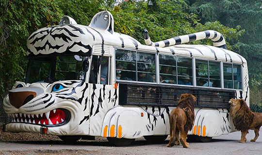 群馬サファリパークの専用バスにのって、サファリツアーに出発!エサやり体験付き、プライベートツアー、ナイトサファリや夕方サファリなど楽しみ方はいろいろ。