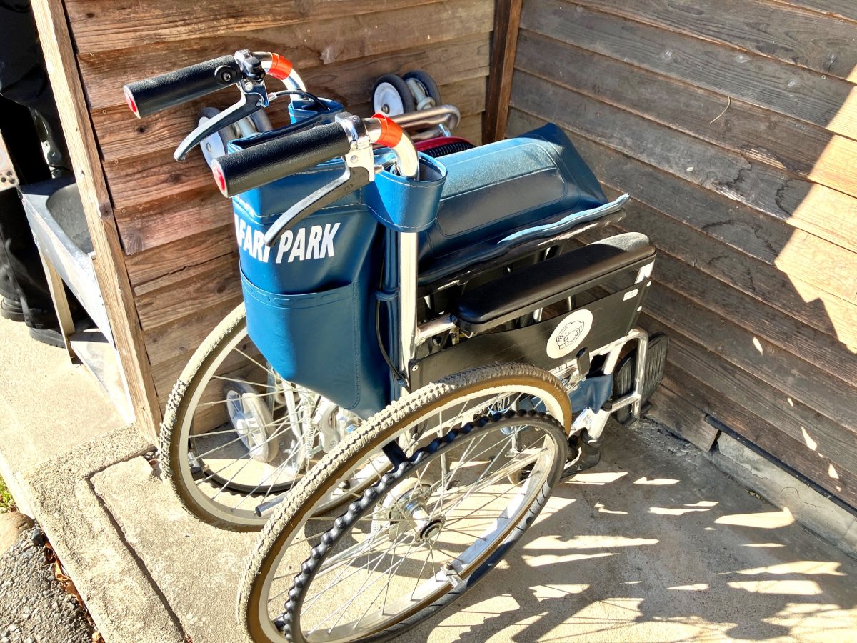 ウォーキングサファリゾーンでは、車イスを無料貸出しておりますので、乗り物から降りた際にはご利用ください。
