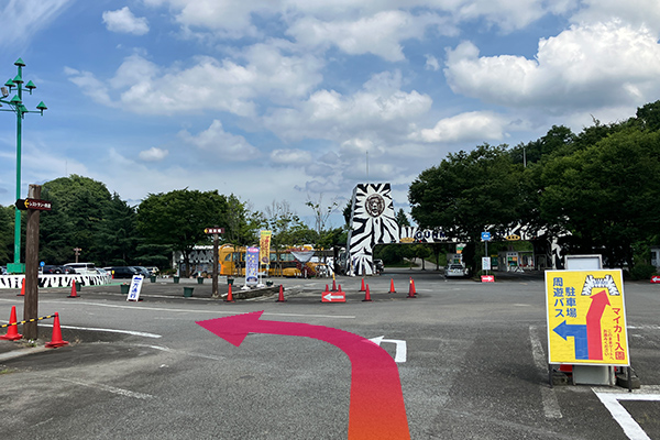 園内バスや、園内レンタカーでサファリを楽しむお客さまは左折して駐車場へ車を駐車してください。