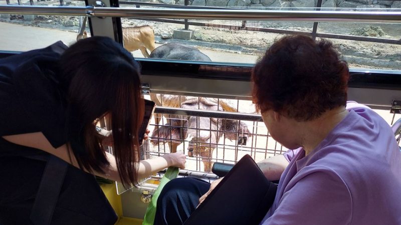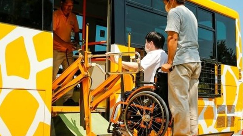 車イスでご来園のお客様にも、当園人気のエサやりバスに乗車いただけるリフト付きエサやり体験バスの運行が始まりました!