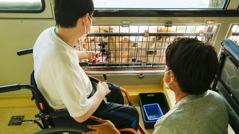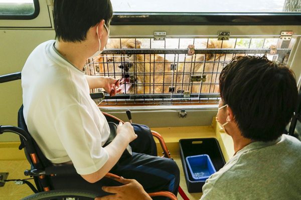 車イスのままご乗車いただけるリフト付きバスを使ったエサやり体験バスは国内では初登場です!