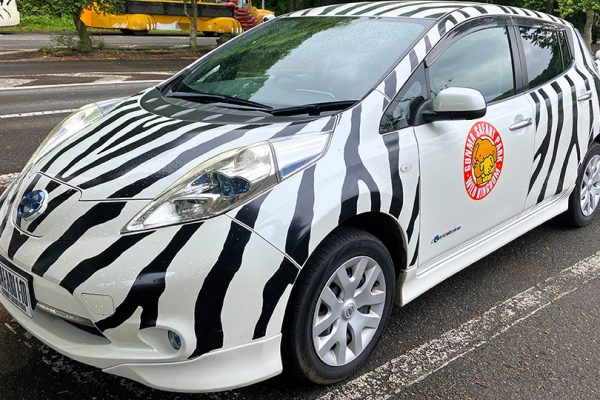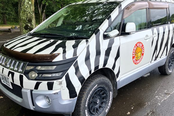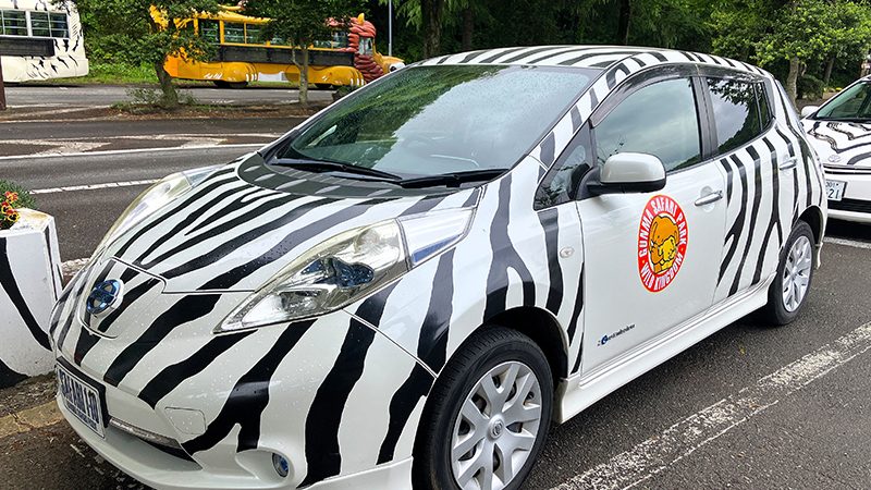 ゼブラ柄や動物をモチーフにしたロゴデザインの車両は思い出作りにも最適です。