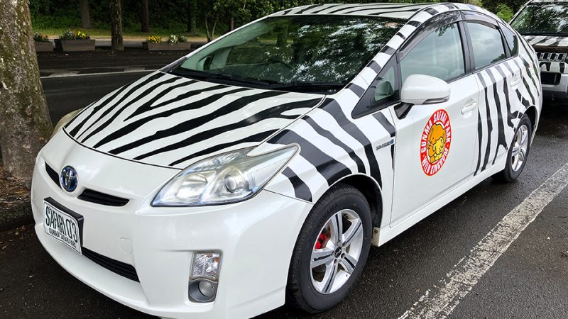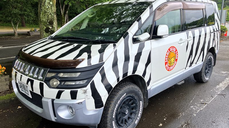 レンタカープラン(7人乗り:ミニバンタイプ) 所要時間 約1時間30分 ゼブラ柄の特別車をレンタルしてサファリを楽しめます!