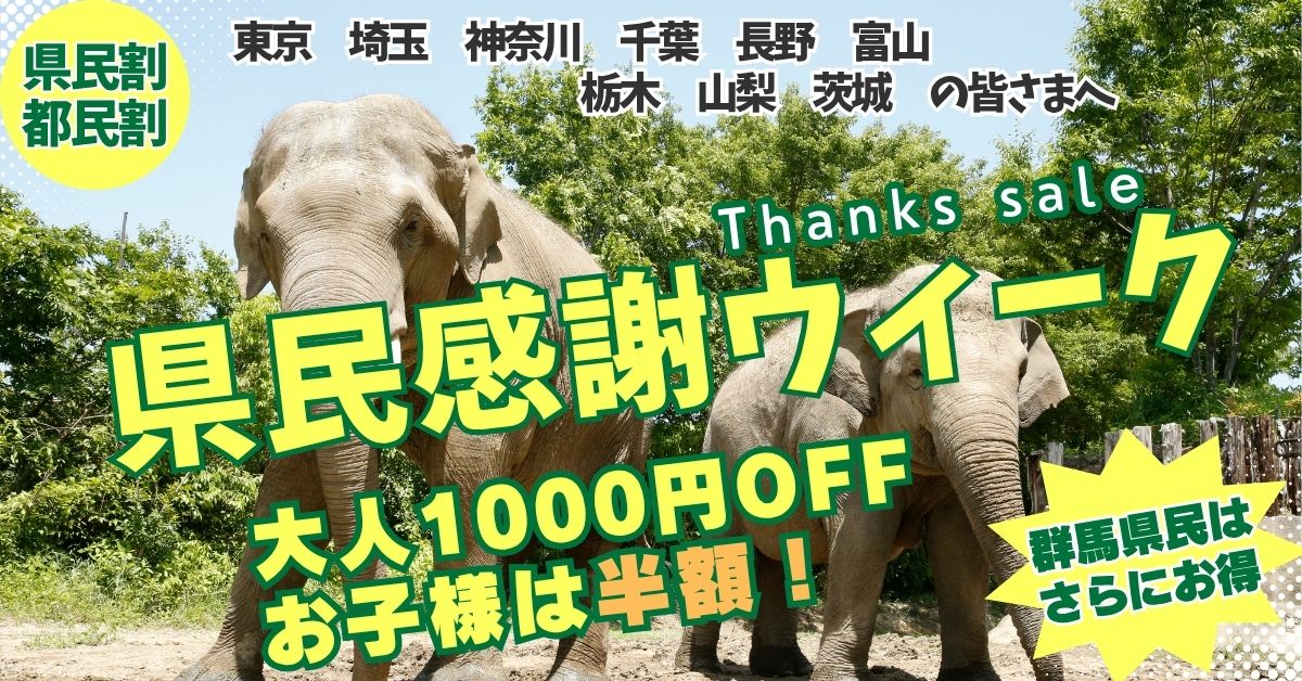 2025年の新潟県民割は終了しました。たくさんのご来場ありがとうございました。 秋の爽やかな空気と共に、群馬サファリパークから特別な感謝の気持ちをお届けします。2025年10月4日(土)から10月13日(祝)までの10日間限定で、「【新潟県民割】新潟県民感謝ウィーク」を実施いたします。新潟県民の皆様には日頃より多くお越しいただいており、その「距離 × 来園者数」の分析でも新潟県が圧倒的に多いことが分かっています。だからこそ、普段の感謝を込めて、この期間中は特別価格でご入園いただけるチャンスです。大人は1,000円引き、お子様(3歳~中学生)はなんと半額(850円)!入場券のみが対象で、園内周遊バス等は別料金となります。WEBチケットの事前購入を強くおすすめします。さあ、新潟の皆様、この秋は群馬サファリパークで動物たちとの出会い、自然とのふれあい、そして普段とはひと味違った時間を過ごしてみませんか。 新潟県民感謝ウィークとは何か 群馬サファリパークでは、新潟県にお住まいの皆様に日ごろの感謝を込めて、「新潟県民感謝ウィーク」を開催いたします。新潟県には「県民の日」が定められていないため、当園で特別に設定するこの感謝ウィーク。過去の来場者アンケートやアクセスデータによれば、新潟県からお越しになるお客様は群馬サファリパーク全体の来園者数において非常に多く「距離 × 来場者数」の指標でもトップクラスとなっています。そのお礼として、この期間限定で入場料を割引いたします。 割引期間と内容 期間・対象者・割引内容 2025年10月4日(土)~10月13日(祝)新潟県在住の方(居住を証明できるものの提示をお願いします)大人:通常3,200円 → 2,200円(1,000円引き)お子様(3歳〜中学生):通常1,700円 → 850円(半額) ※シニア(65歳以上)の料金2,400円は、この新潟県民感謝ウィークでは大人料金(2,200円)の方が安くなるため、住所確認ができれば割引適用いたします。※割引は「入場券」のみが対象です。園内周遊バスやガイドツアー等は別途料金が必要です。 ご利用方法・注意点 割引を適用するには、新潟県にお住まいであることを確認できる身分証の提示が必要です。受付窓口にてご提示ください。チケットはWEBチケットと当日窓口の両方でご購入可能ですが、WEB購入の方が混雑を避けられ、スムーズです。事前のWEB購入をおすすめします。園内周遊バスやエサやりバス、体験ツアー、園内レンタカーなどのアトラクションは入場料金とは別料金です。乗車や体験を希望される方は当日別途お支払いください。 感謝ウィーク中の楽しみ方 動物たちとのふれあい強化ふれあいパークやふれあいハウス、小動物との触れ合いが楽しめる「ふしぎの動物の森」、本格VR体験のできる「わくわくアドベンチャーランド」など、お子様連れにおすすめのスポットが多数あります。 人気ツアーも充実 サファリバス(約70分/土日祝運行)、エサやりバス、平日限定のエサバスplusなど、動物の自然な姿を間近で観察できるツアーがそろっています。 食事と休憩も安心 レストラン「サバンナ」、ファストフード「オークウッド」、売店「マルシェ」で、軽食からしっかりご飯まで、お好みに合わせてご利用ください。 季節ならではの自然美を堪能 10月は群馬も紅葉の始まり。動物たちと紅葉とのコントラストを楽しみながら、写真映えする風景が広がります。 他県の皆様へ この感謝ウィークは新潟県民の皆様への特別な感謝企画ですが、多くののお客様からのご要望もいただいています。今後、県民の日を基準に他県の皆様にも感謝ウィークのような特別料金企画を設定する予定です。どうぞお楽しみにお待ちください。 群馬県民の日(10/23~10/28)は販売中です https://ticket.safari.co.jp/ まとめ 新潟県民の皆様、この秋は群馬サファリパークで心温まる感謝ウィークをお楽しみください。利用期間は10月4日(土)~10月13日(祝)で、割引内容は 大人1,000円引き、子ども半額(850円)。入園券のみが対象ですので、園内ツアーやバス等は別料金となります。混雑を避けるため、WEB事前購入を強くおすすめします。動物たちとのふれあい、紅葉散策、特別な写真のチャンスもいっぱい。新潟からでもアクセス良好です。皆さまのご来園を、スタッフ一同心からお待ちしております。